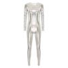 Женский цельный комбинезон с круглым вырезом и длинными рукавами металлик, праздничный комбинезон для всего тела