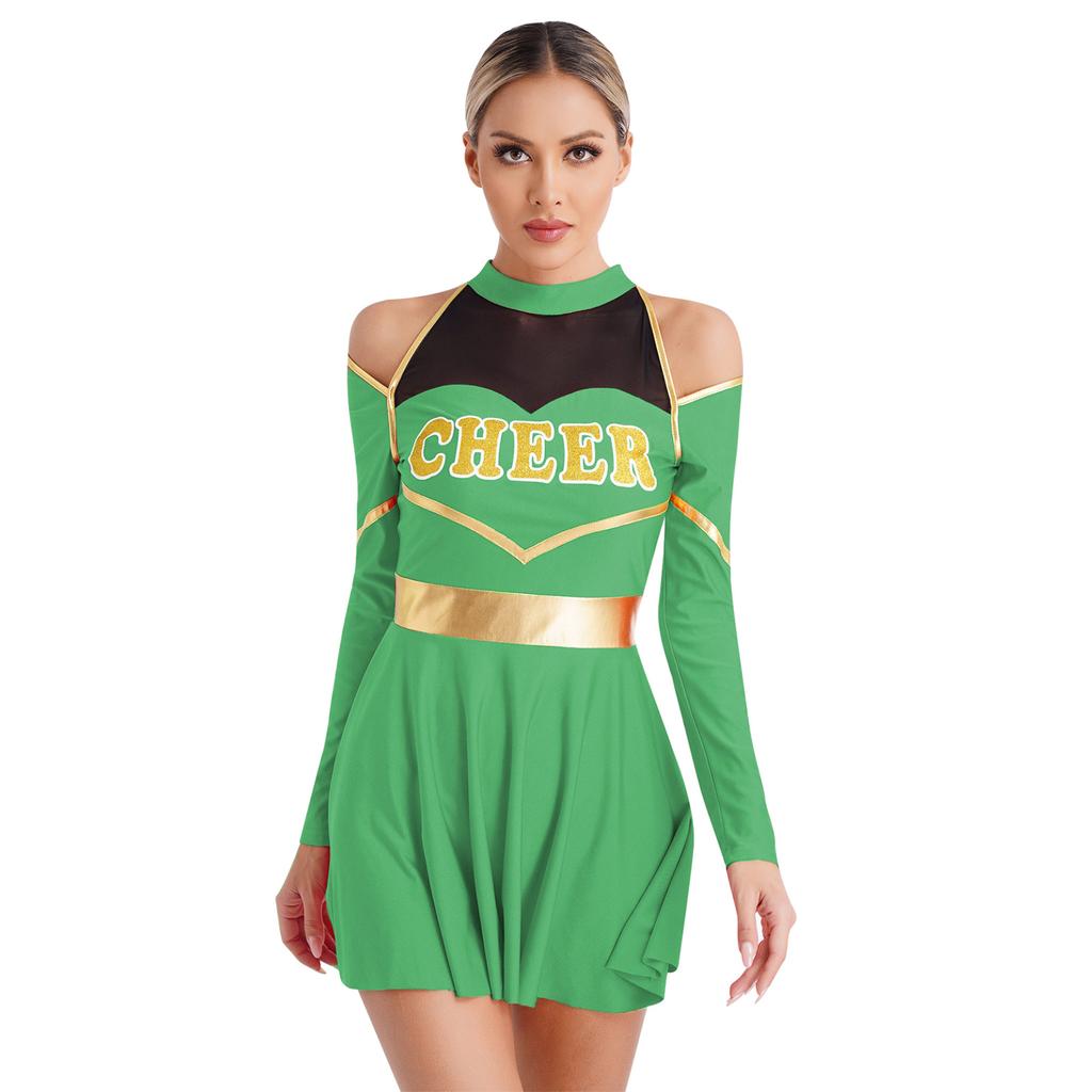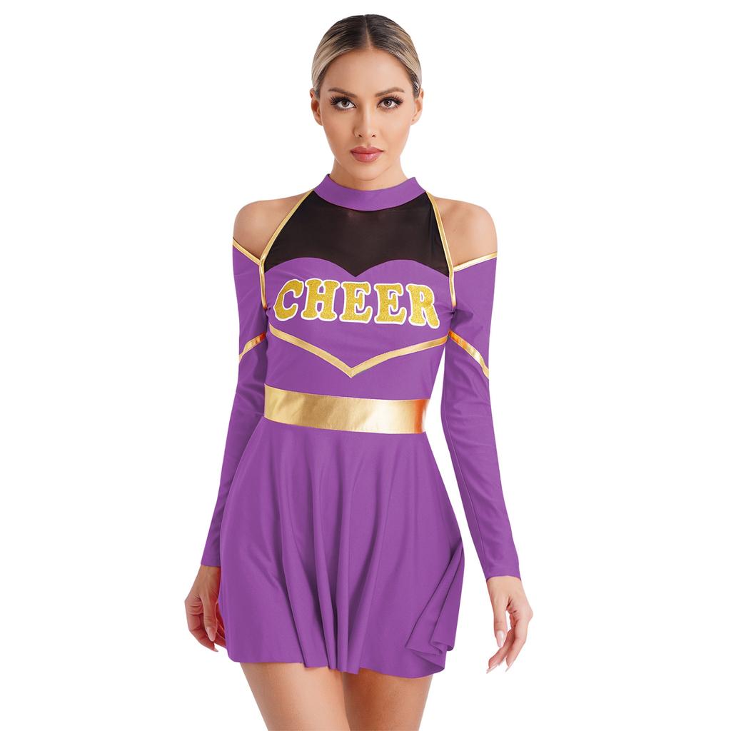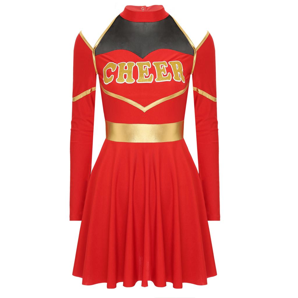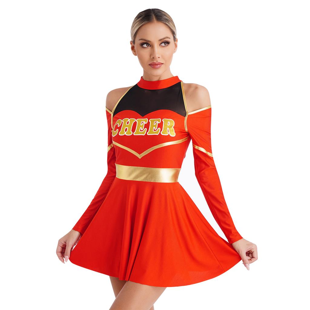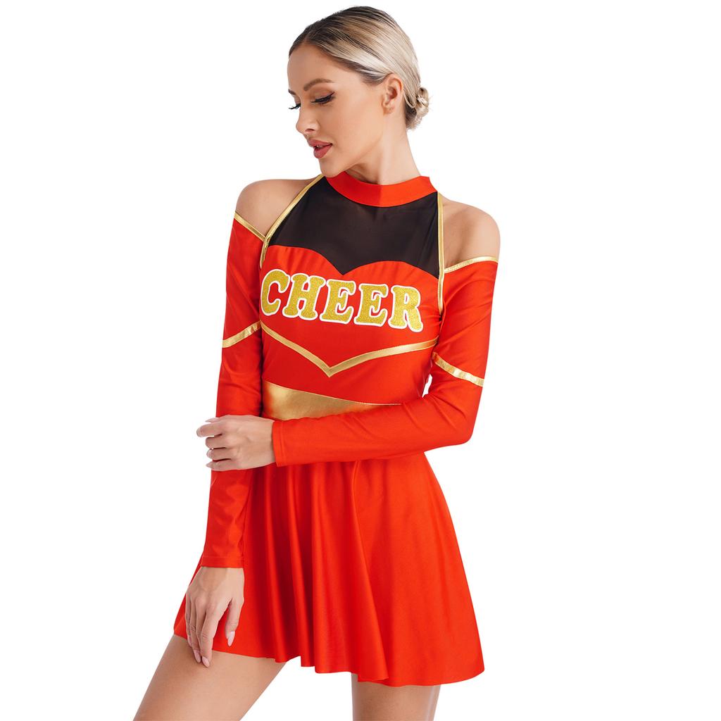Женские костюмы черлидинга для школьниц, платье с открытыми плечами и вырезом с буквенным принтом для Хэллоуина, игры с мячом