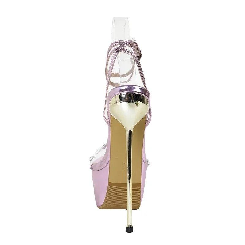 Eilyken ПВХ прозрачные женские босоножки с кристаллами пикантная платформа с пряжкой на щиколотке и ремешком очень тонкие свадебные туфли на высоком каблуке Zapatos De Mujer