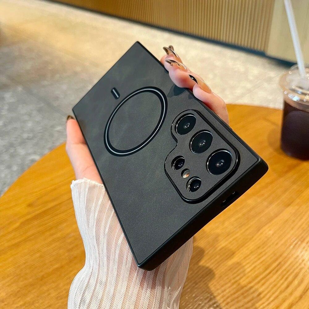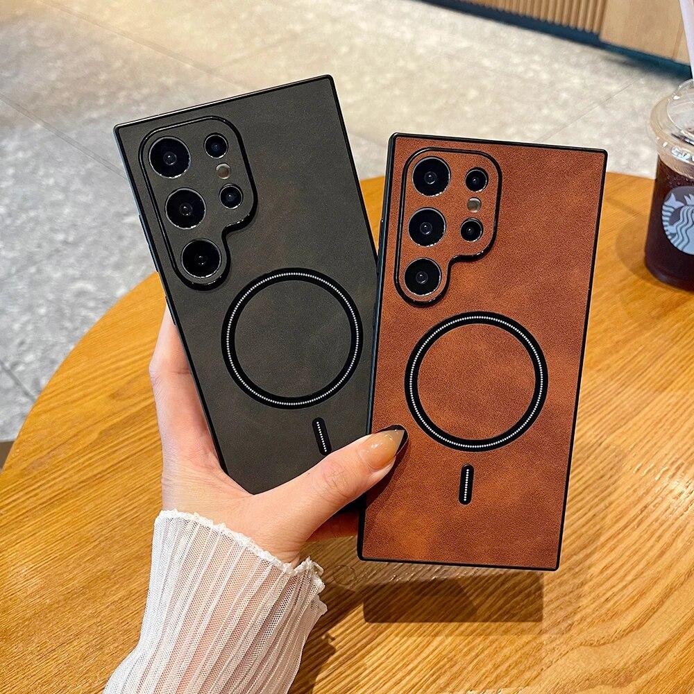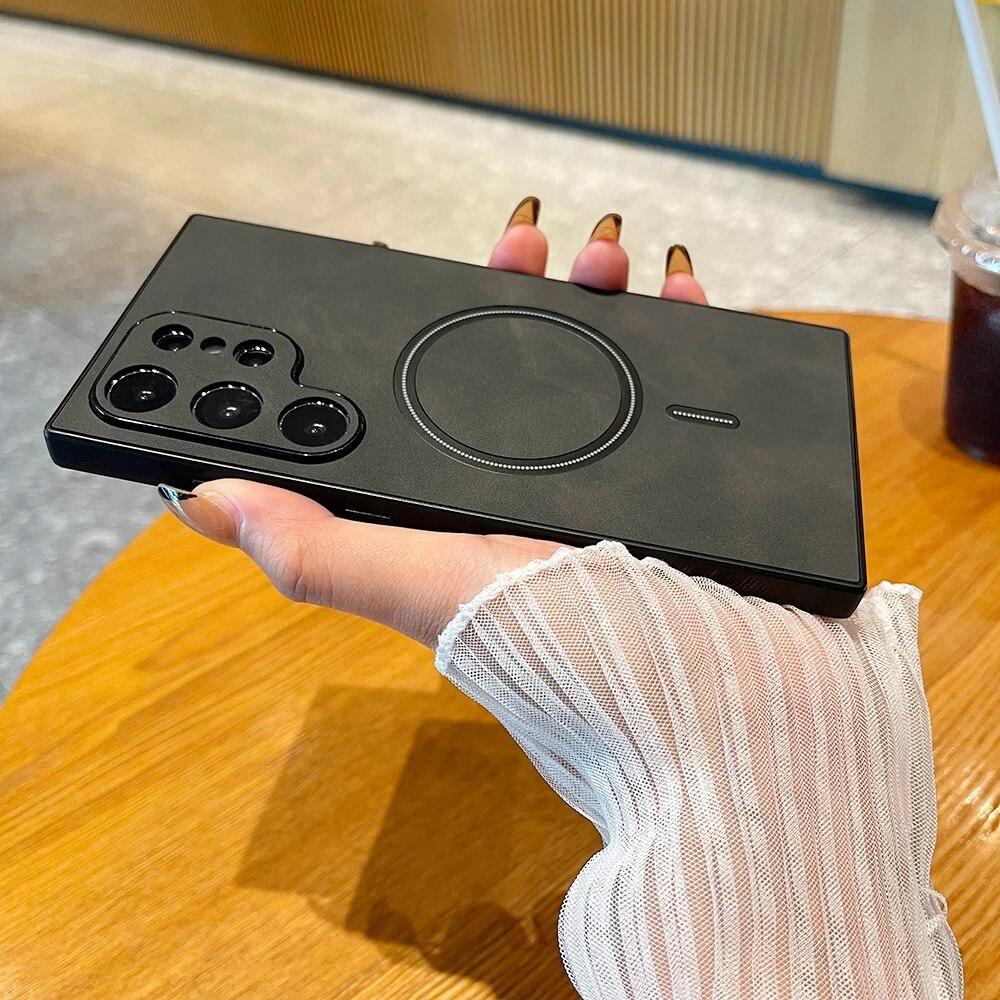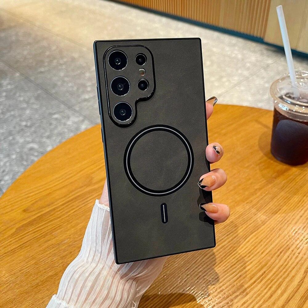Роскошный матовый кожаный чехол в стиле ретро для Samsung Galaxy S24 S23 S22 S21 Plus, ультрамагнитный противоударный чехол с беспроводной зарядкой