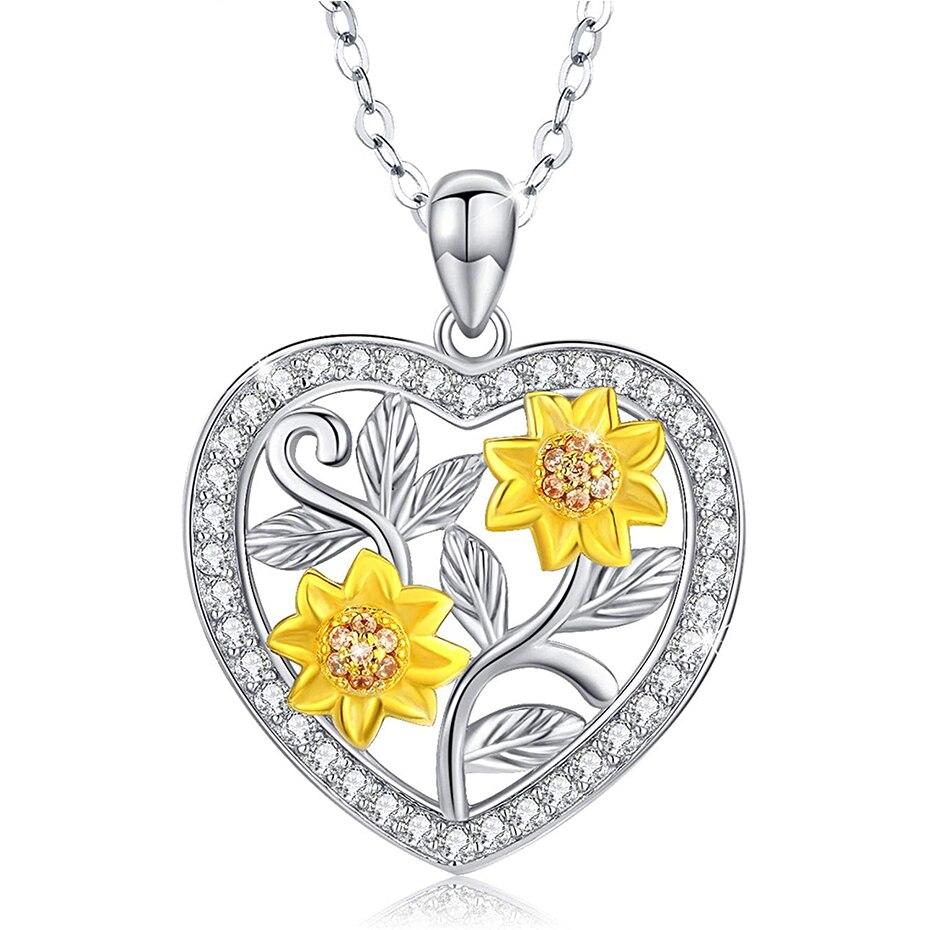 Ожерелье с подвеской в виде подсолнуха для женщин, подвески в форме сердца, модные украшения, подарки для девочек