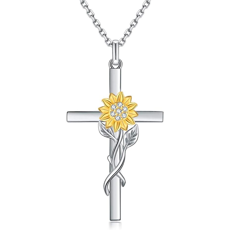 Ожерелье с подвеской в виде подсолнуха для женщин, подвески с крестом, модные украшения, подарки для девочек