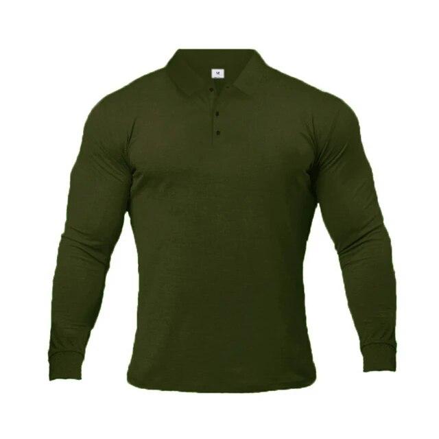 Осенняя спортивная рубашка-поло, мужская эластичная хлопковая спортивная одежда, весенняя повседневная рубашка-поло с длинными рукавами, мужская дышащая футболка