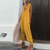 Женский комбинезон, летний винтажный однотонный модный повседневный комбинезон на пуговицах без рукавов с капюшоном, уличная одежда, женский комбинезон 3XL