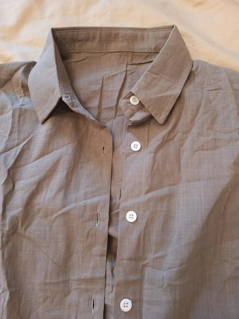 Рубашка не плохая, но смотрится как обычная классическая мужская рубашка,но не как на фото далеко, ткань похожа на хлопок, на обьем груди 104-106, подошла, пуговицы перешью на темные, в живую бы увидела, даже и не взяла. Но возврат делать не буду, может когда и надену.