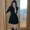 Платья женские однотонные складки тонкие элегантные сексуальные женские трапециевидные мини стильные с пышными рукавами простые повседневные летние повседневные