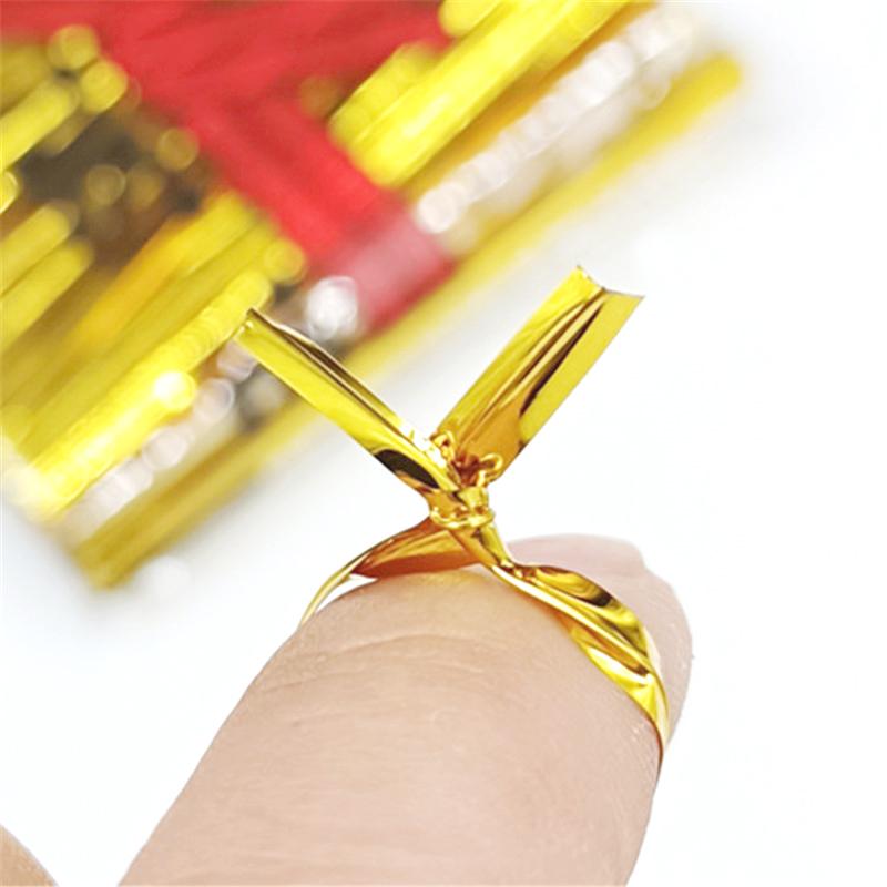 500 шт., товары для свадебной вечеринки, упаковочная веревка для сумки для конфет, упаковка для выпечки, леденец, подарочные уплотнительные стяжки, золотые, серебряные, металлические закрученные завязки