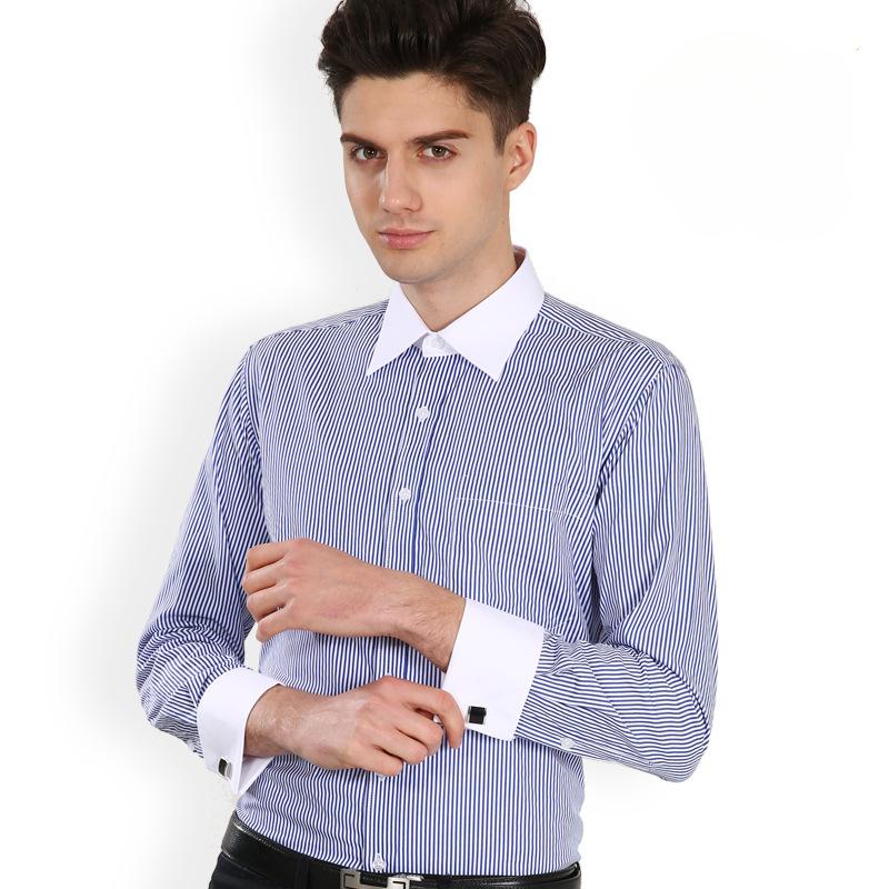 Мужская деловая рубашка на весну и осень, повседневная рубашка в полоску, рубашка большого размера с длинным рукавом