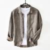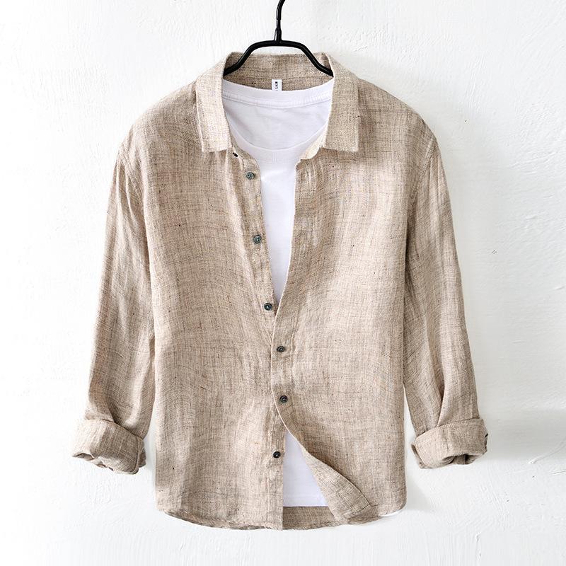 Мужская весенне-летняя льняная дышащая рубашка, деловая офисная рубашка с воротником-стойкой, высококачественная рубашка с длинным рукавом