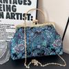 Винтажный женский свадебный клатч с цветочным замком, зажим в форме ракушки, сумки на плечо с цепочкой и бахромой, фиолетовые, синие сумки через плечо, сумки и кошельки