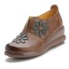 Johnature Женские туфли-лодочки из натуральной кожи с круглым носком в стиле ретро, женская обувь на танкетке с мягкой подошвой и цветочным принтом в этническом стиле