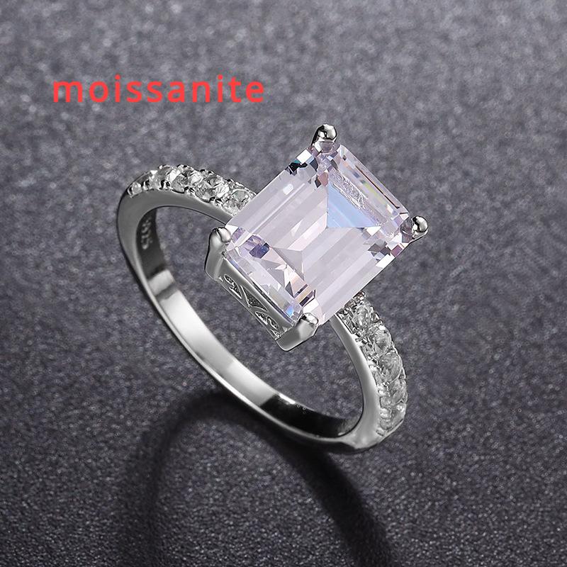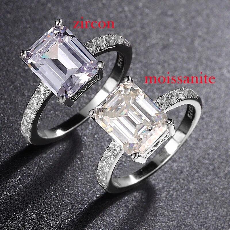 4CT 8*10 мм изумрудные кольца с цирконом/муассанитом для женщин, классическое обручальное кольцо, оригинальное ювелирное изделие из стерлингового серебра 925 пробы, подарок