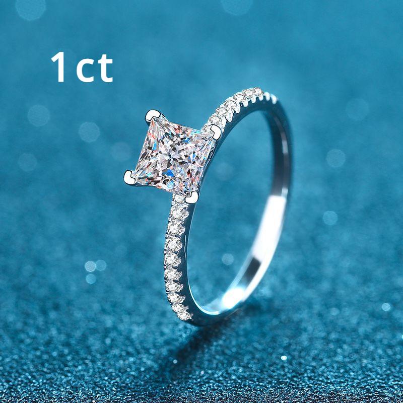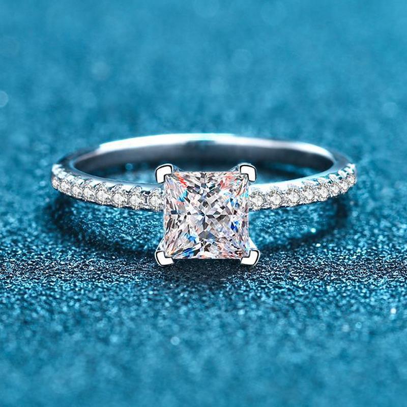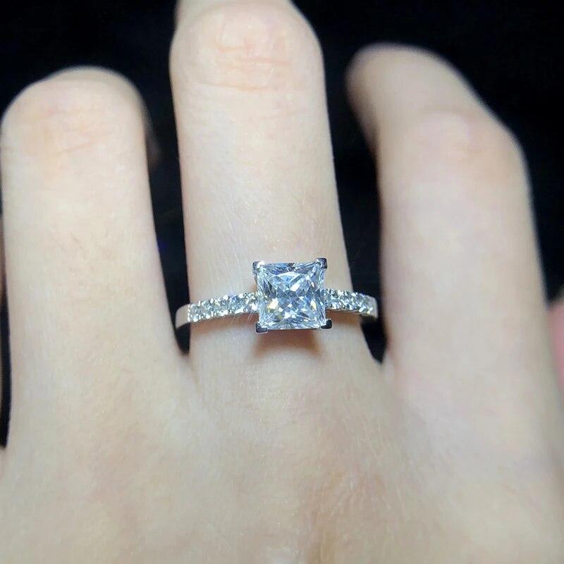 Настоящее кольцо с муассанитом огранки принцессы 1-2 карат для женщин, обручальное обручальное кольцо со сверкающим драгоценным камнем S925, посеребренное, Pt950 GRA