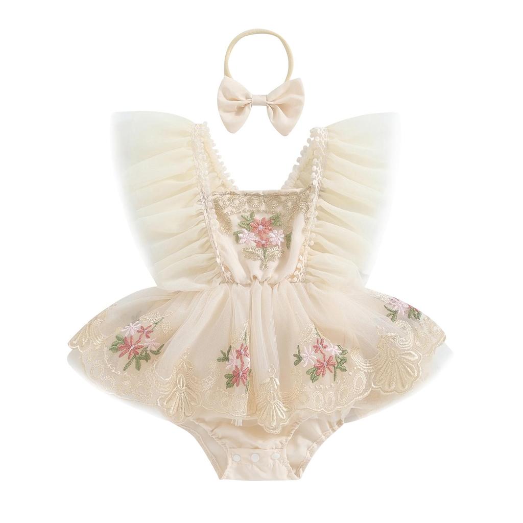 Наряд для новорожденных девочек 3, 6, 12, 18, 24 месяцев, тюлевой комбинезон с цветочной вышивкой и рукавами-крылышками, платье в стиле пэчворк с бантом, летняя одежда — купить товар онлайн с бесплатной доставкой по всему миру!