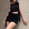 Y2k женская сексуальная юбка, комплект из двух предметов, летний жаккардовый цветочный оборками, мини-модный укороченный топ и юбка с запахом, костюм, клубная уличная одежда