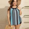 2024 комплект танкини больших размеров, женский комплект с цепочкой и в горошек, топ с круглым вырезом, шорты, купальник, комплект из двух предметов