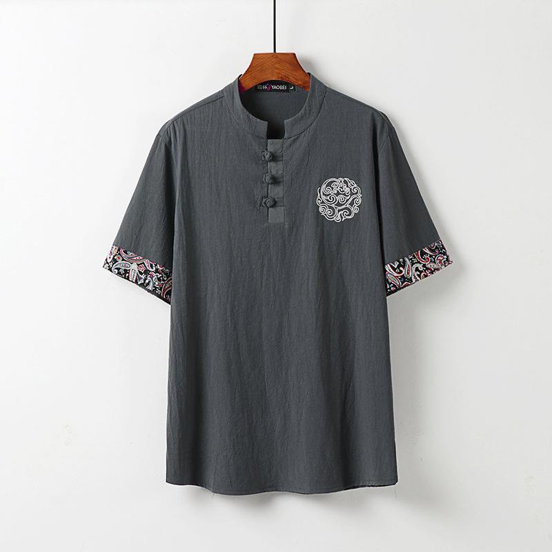 Летние повседневные мужские хлопковые топы с круглым вырезом и короткими рукавами на пуговицах, одежда, мужской топ из хлопка и льна, летняя льняная футболка с короткими рукавами с вышивкой — купить товар онлайн с бесплатной доставкой по всему миру!