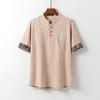 Летние повседневные мужские хлопковые топы с круглым вырезом и короткими рукавами на пуговицах, одежда, мужской топ из хлопка и льна, летняя льняная футболка с короткими рукавами с вышивкой