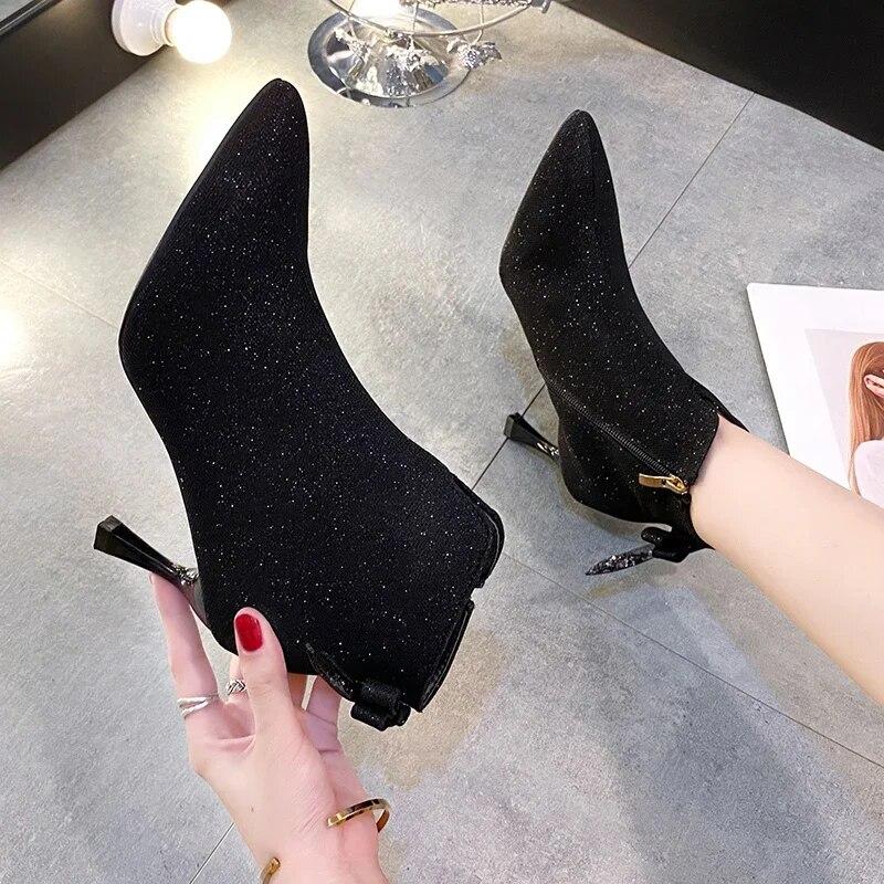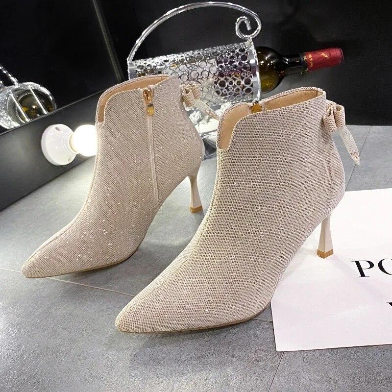 Модные универсальные короткие ботинки, женские весенне-осенние ботинки с острым носком на шпильке, удобные ботинки телесного цвета на молнии сзади