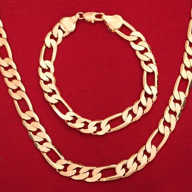 S925 Стерлингового Серебра 18 К Золото Ширина 8 ММ Браслеты-Цепочки Ожерелье для Женщин Мужчин Модные Свадебные Наборы Ювелирных Изделий В Панк