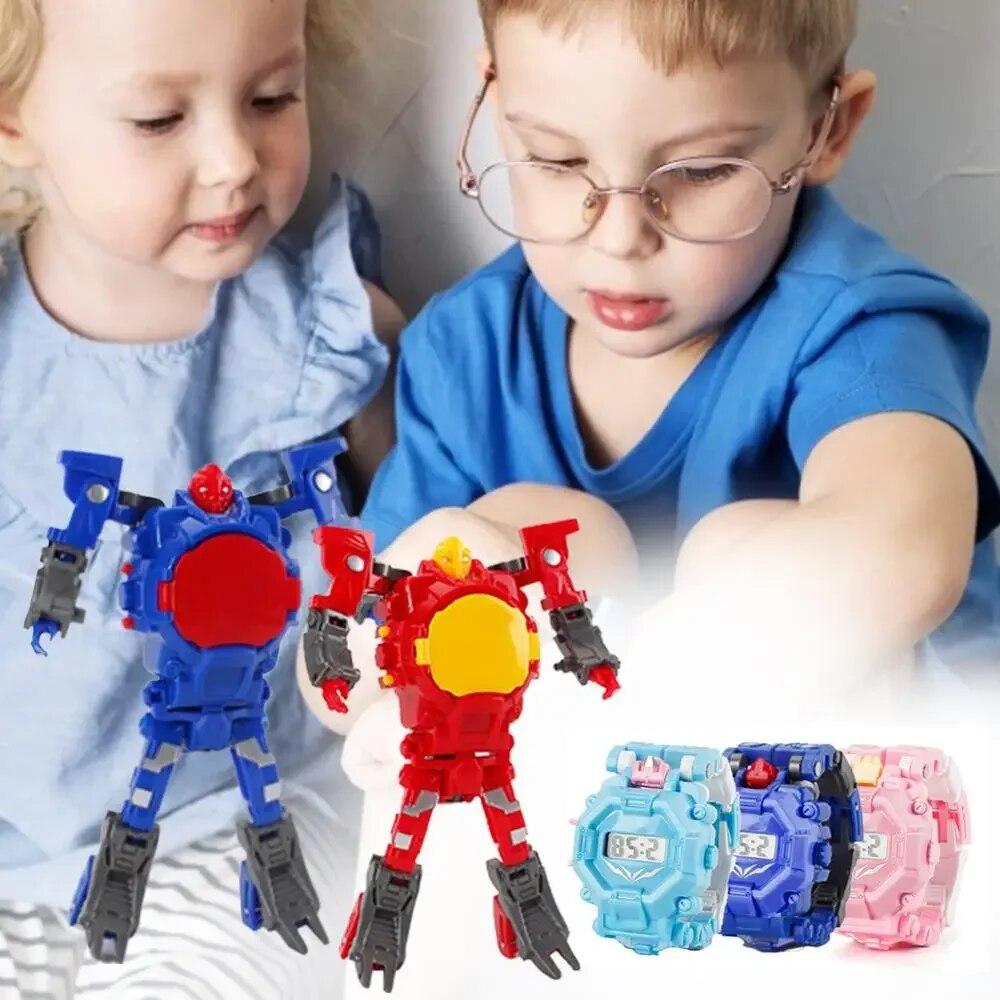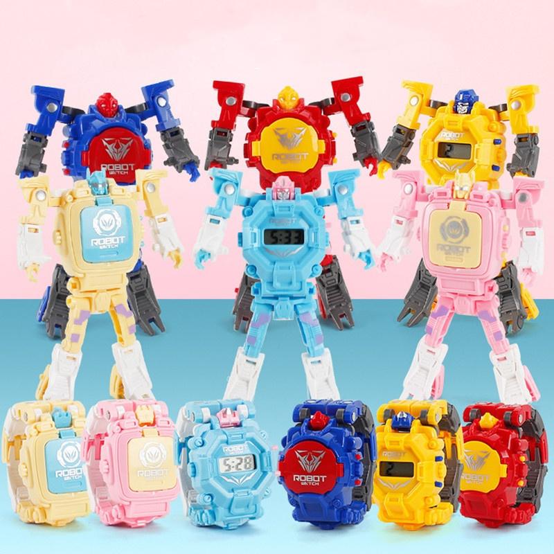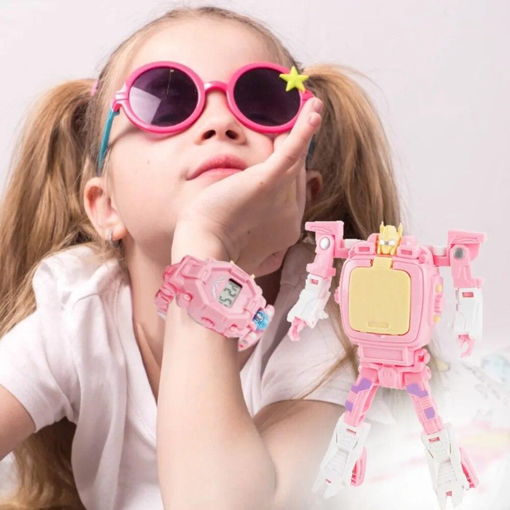 Детские часы-игрушка 2 в 1, инновационные мультяшные часы, цифровой робот-деформация, электронные игрушечные часы