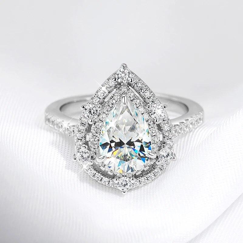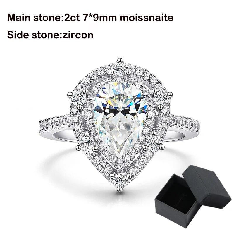 7*10 мм, 2 карата, обручальные кольца с муассанитом грушевидной огранки для женщин, стерлинговое серебро S925, роскошная форма воды, имитация бриллиантового кольца