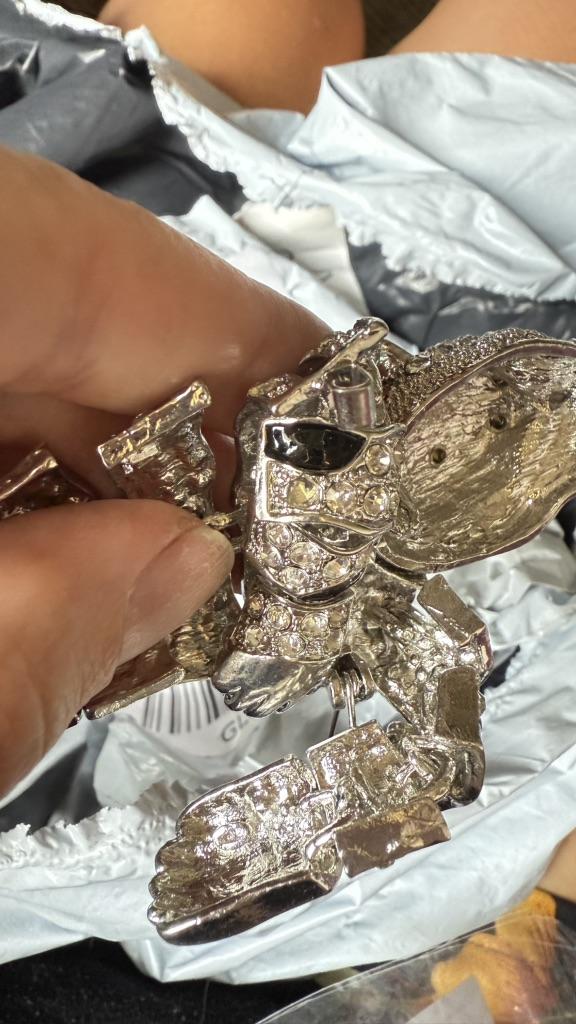 Брошь пришла сломанной. Нога у тигра выгнута и сломана в месте крепления. Двух камушек не хватает. Причем в упаковочном пакете этих камней не было, значит сразу упаковывали бракованный товар! Обратилась в службу поддержки, но прикрепить видео повреждений не удалось, очень маленькие ограничения по качеству видео. А фотографий им, видите ли, недостаточно. Разочарование полное. И продавцом, и поддержкой Джум. Я бы и одну звезду не ставила.