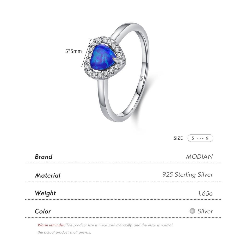 MODIAN Изысканное винтажное кольцо из стерлингового серебра 925 пробы с синим сердцем и опалом, романтический ретро-подарок на годовщину для женщин, ювелирные украшения