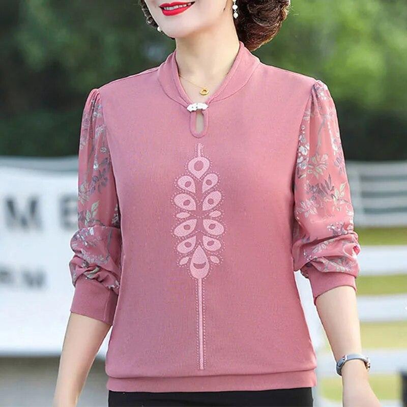 Корейская женская модная свободная футболка весна-лето с воротником-стойкой, марлевая одежда с длинными рукавами, большой размер, повседневная одежда с цветочным принтом — купить товар онлайн с бесплатной доставкой по всему миру!