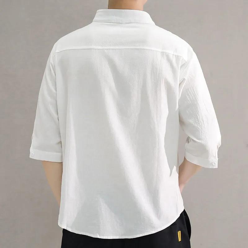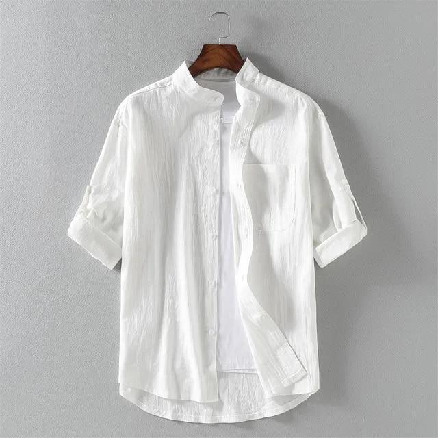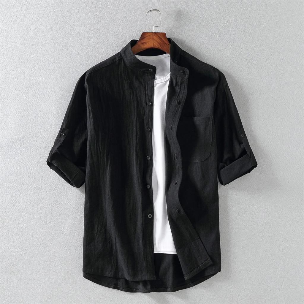 Мужская весенне-летняя рубашка-стойка с пятиточечным воротником и средним рукавом, модная мужская рубашка с короткими рукавами, семиконечный рукав, большой размер