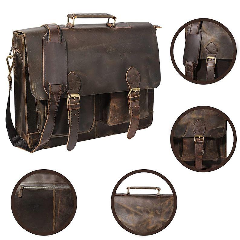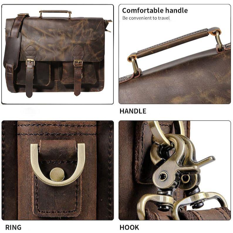 Держите ремень: Плечевой ремень поставляется с наплечником.. Все металлические аксессуары, используемые в сумке, изготовлены из полированной латуни, которая на 100% устойчива к ржавчине.. Эту коричневую сумку для ноутбука с удобным съемным регулируемым ремнем можно носить на плече или через плечо.