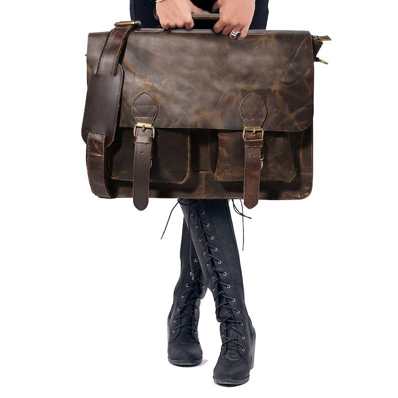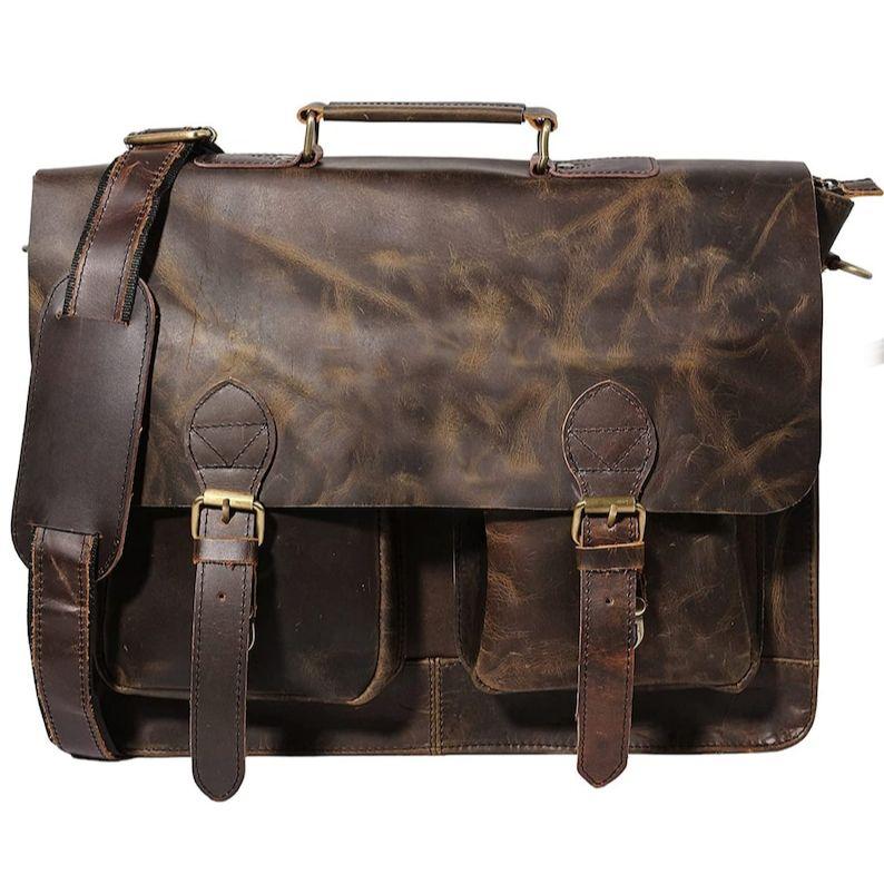 Превосходная сумка-мессенджер из шкуры буйвола с высококачественными пряжками из полированной латуни.