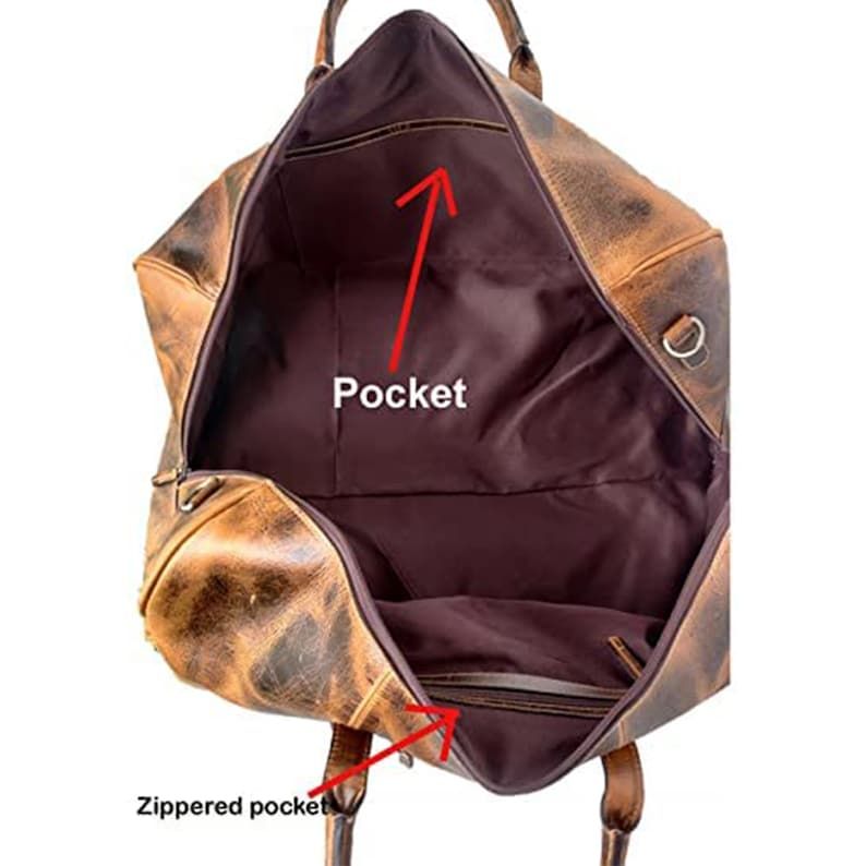 Верхняя текстура кожи буйвола, мастерски прошитая прочной вощеной нитью для обеспечения долговечности спортивной сумки.. Внутренняя подкладка сумки - полиэстер высокой плотности.. Имеет высококачественные латунные пряжки. Делает вашу сумку очень дорогой. Надежное оборудование и конструкция.