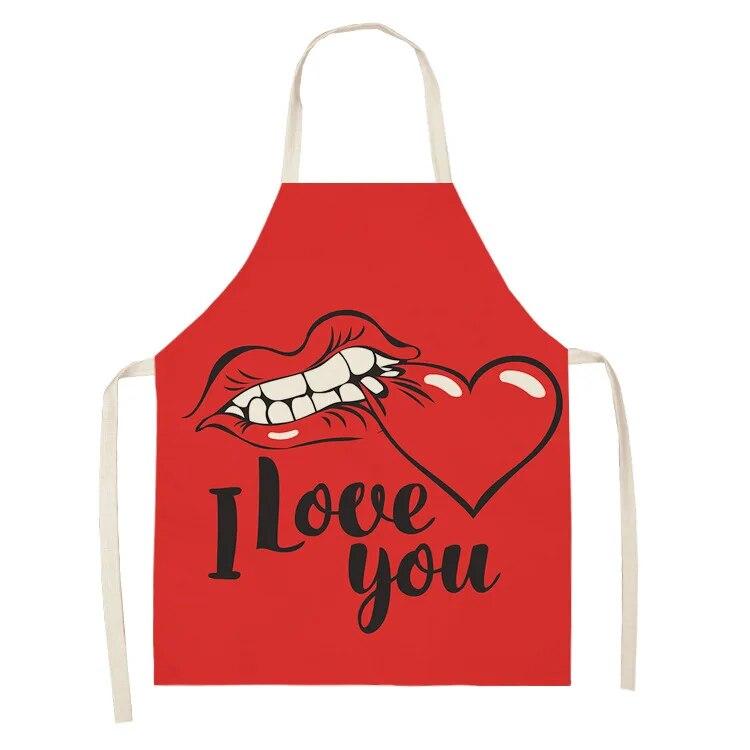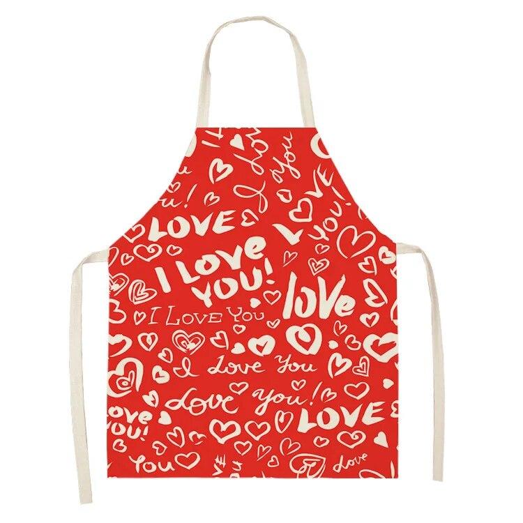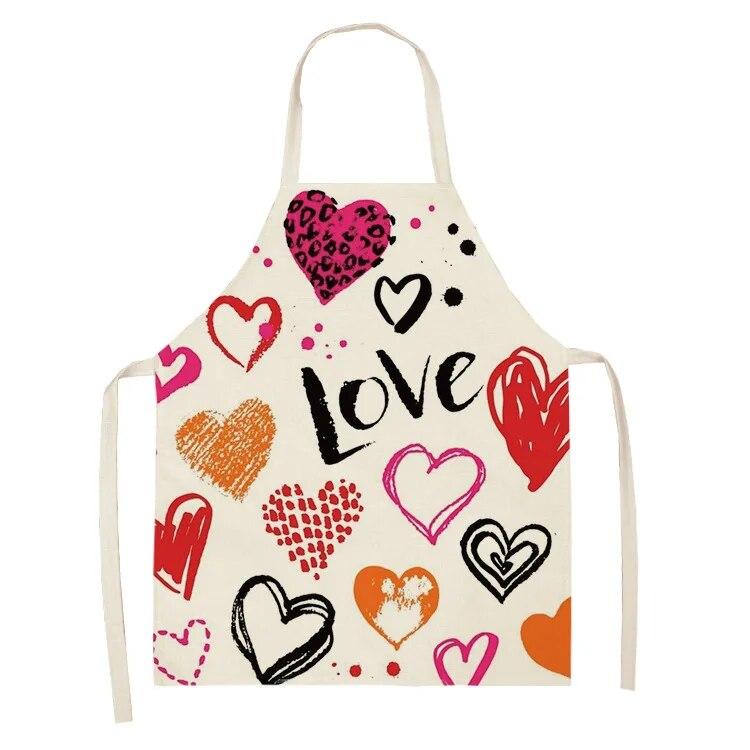 Красочный фартук с узором в виде сердца для влюбленных, фартук для ужина в отеле, кухонный фартук для домашней кухни, льняной фартук от шеф-повара, чистый фартук