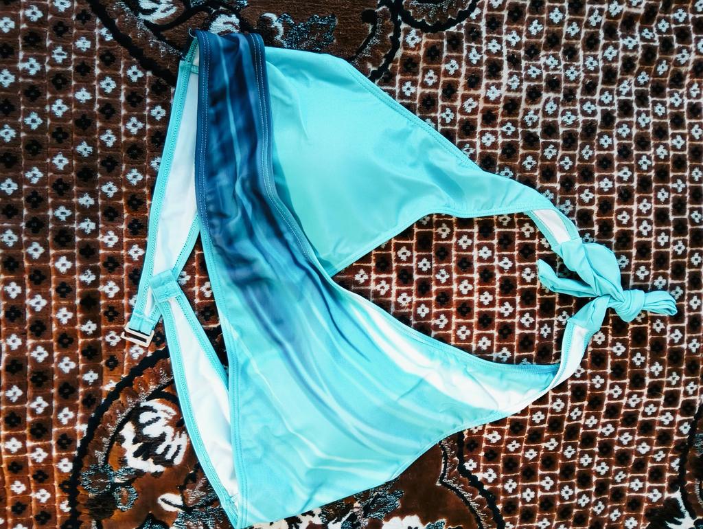 Фасон купальника какой то чудной, что верх, что низ, XL оказался велик на мой 48-50 размер, цвет не такой как на картинке, бирюзовый оттенок совсем блеклый. Из плюсов только качество ткани и фурнитура. Носки, которые в подарок положили, хорошие.