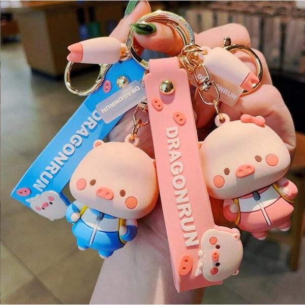 Набор из 2 ключей Lucky Life с изображением милой свиньи, спортивная форма синего и розового цвета