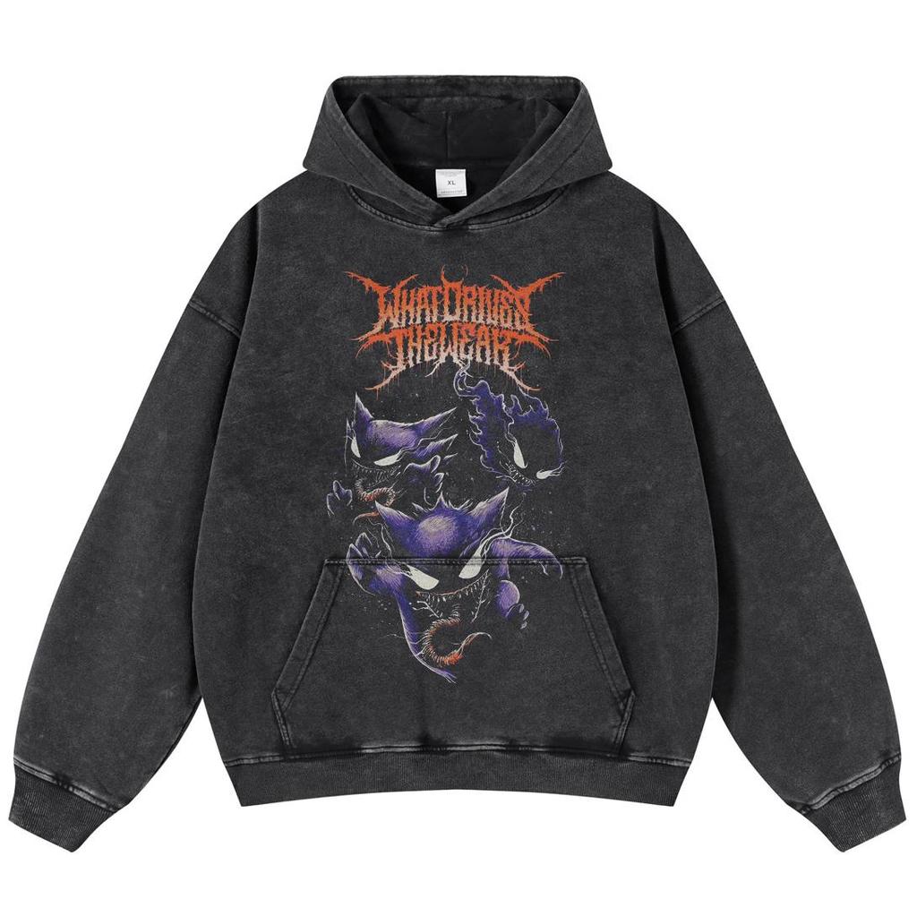 Уличная одежда ET Invader Графический унисекс Мытый черный свободный худи унисекс с длинными рукавами