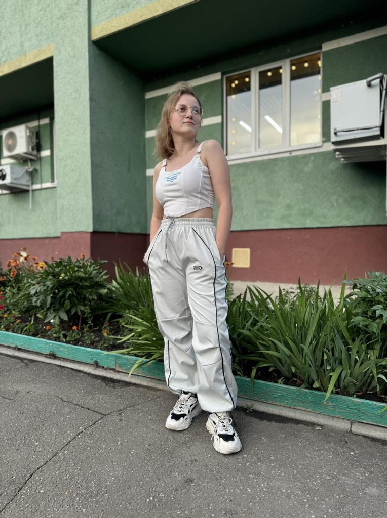 Карго интересного оттенка ❤️ Замеры изделия (размер M): Обхват талии — 64-84 см Обхват бедер — 106 см Длина — 94 см Вообще цвет очень крутой. Он назван как «серый», но по факту есть в нем какой-то легкий оттенок зеленого, что придает ему необычности) - Сделаны из плащевки, внутри есть тонкий сетчатый подклад; - Карманы глубокие, телефон помещается прям свободно; - Талия на резинке с кулиской, веревки легко прячутся внутрь (так как и сам шнурок протянут внутри); - Нижняя часть брюк затягивается, так что можно носить как свободно, так и затянуто. Вообще огонь карго ✨