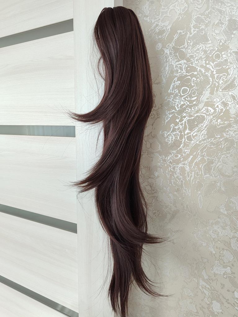 Длинный хост-шиньон на крабе. Доставка заняла чуть больше месяца до почтового отделения Укрпочты, сборная посылка Joom. Шиньон упакован в пакет. В магазине на выбор есть 5 варианта оттенка волос, себе я заказала оттенок 4 - тёмно-русый с шоколадным оттенком. Шиньон сделан каскадом, пряди разной длины, смотрится красиво и натурально. Длина полностью около 60 см. Шиньон на крабе из синтетических волос. Данную модель шиньона можно использовать для ежедневной носки! При расчесывании или укладке руками локоны создают нужный объем и форму. После мытья завитки сохраняют свою форму. При желании можно снять краб и закрепить шпильками, сами волосы нашиты на кружево. Краб-заколка держится хорошо, размер около 9 см, подойдёт практически для любых волос и хорошо фиксирует. Качество хорошее, отличный повседневный вариант быстро сделать прическу. Такая заколка-шиньон - это удобно и практично, к покупке могу рекомендовать 👍