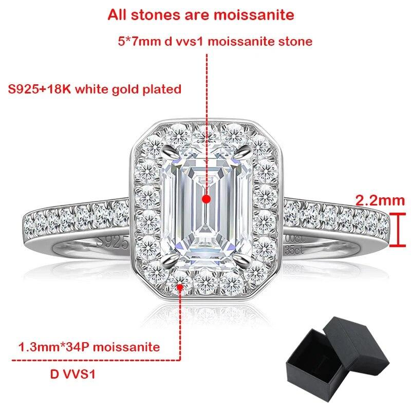 Кольцо с муассанитом изумрудной огранки 1,35 карата для женщин, цвет D, Vvs1, сверкающее обручальное кольцо с драгоценным камнем, 100% серебро S925, 18-каратное золото