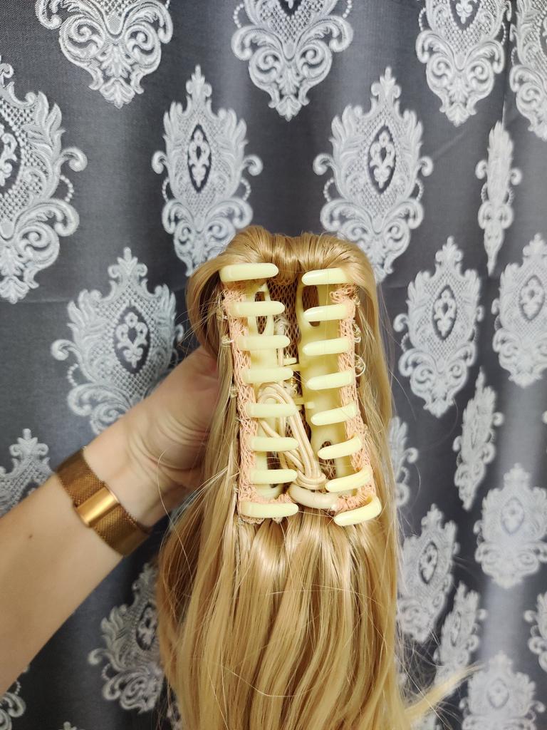 Хвост термо волосы, шиньон на крабе Очень красивый накладной хвост Идёт на заколке "краб" Хвост идёт каскадом, благодаря этому есть красивый объем и с виду как будто это ваши волосы а не накладные Это термо волосы, их можно крутить на плойку и выравнивать утюжком при средней температуре У продавца написано длинна 35см в подкрученом виде Качество волос отличное, от натуральных не отличить, абсолютно не выпадают! Вобщем я очень довольна заказом! Однозначно рекомендую! Благодарю продавца ❤️