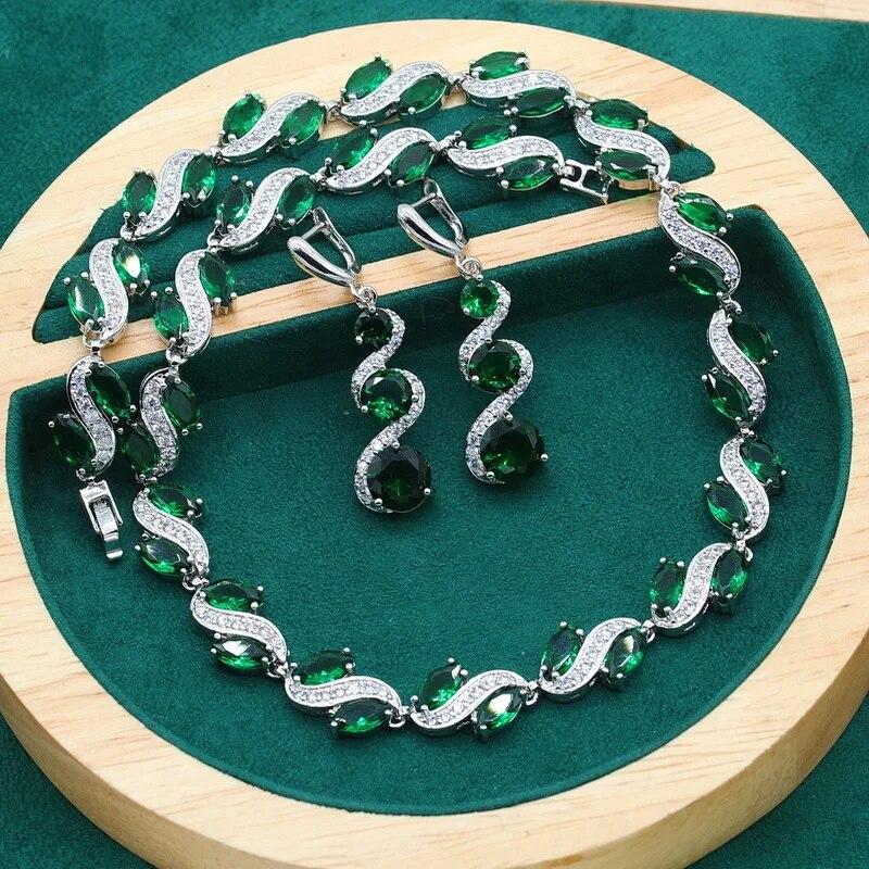 Ожерелье из серебра 925 пробы, комплекты ювелирных изделий для женщин, свадебные изысканные длинные серьги с зеленым королевским синим цирконием, подарок на праздник