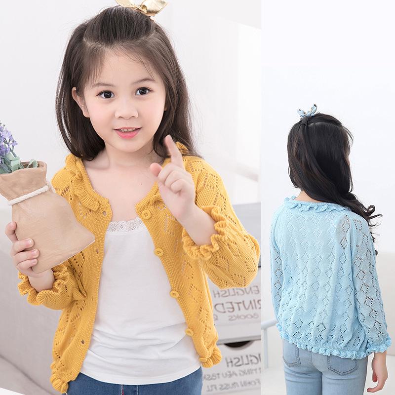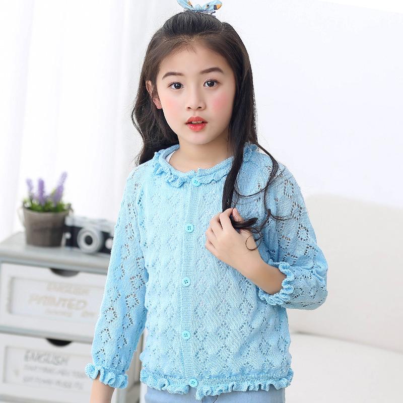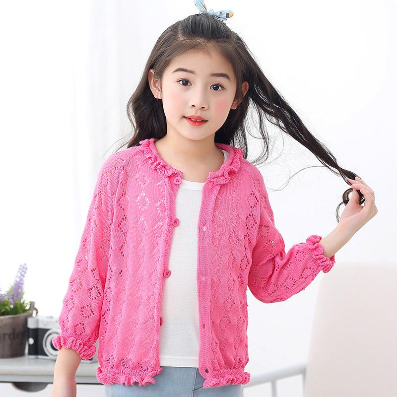Весенне-осенний кардиган с открытыми оборками и рюшами для девочек, свитер для девочек, тонкие вязаные свитера в консервативном стиле