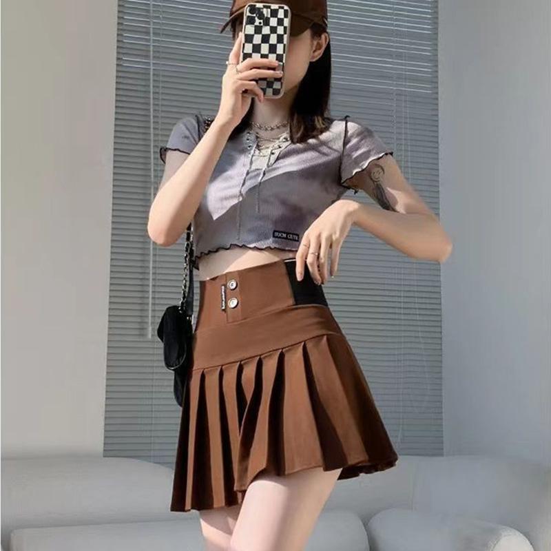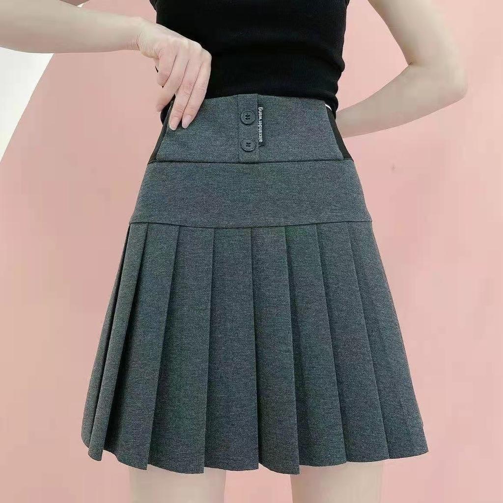 Y2K Harajuku плиссированная юбка на пуговицах с буквенным принтом, эластичная мини-юбка трапециевидной формы с высокой талией, корейская модная школьная кавайная женская юбка