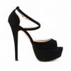 Новые модные женские туфли-лодочки, сексуальные туфли с открытым носком 14 см, супер высокие каблуки, босоножки на платформе с ремешком на щиколотке, черные, красные, свадебные туфли