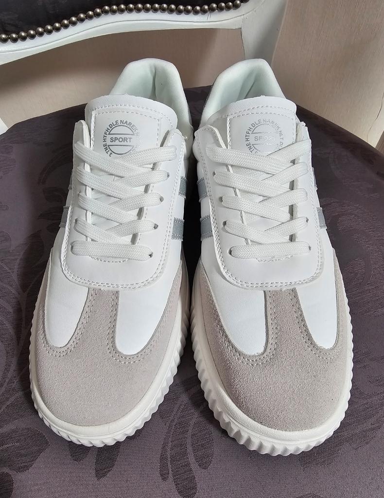 Классные кроссовки из проверенного магазина 👟 Привет) К этим кроссовкам долго присматривалась. Очень понравился дизайн, но никак не могла определиться с расцветкой. Заказала в итоге вариант с серебристыми полосками, поскольку они показались чуть более универсальными. Но теперь хочу такие же с черными полосками)) Кроссовки превзошли ожидания. При такой низкой цене качество вполне достойное: следов клея нет, сделаны аккуратно. Они супер лёгкие несмотря на довольно массивную подошву. И удобные, на ноге не ощущаются совсем. Материал верха: искусственная кожа. На длину стопы 24 см, ширину стопы 9.5 см заказала размер 39. Кроссовки чуть великоваты по длине, но это не мешает (думаю, 38 был бы маловат). Если у вас узкая стопа, то возможно, при длине стопы 24 см подошёл бы размер 38. Читайте, пожалуйста, отзывы. Их много, они помогут сделать правильный выбор. Доставка до Ставрополя - около 20 дней. Я покупкой довольна. Кроссы универсальные, подойдут подо все. Надеюсь, прослужат долго.