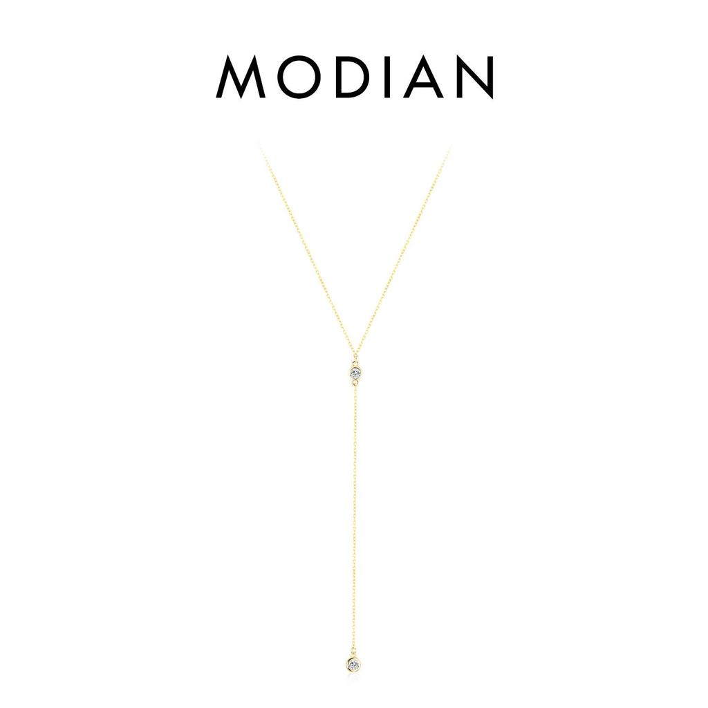 Модиан стерлингового серебра 925 пробы Y-образное ожерелье с подвеской блестящий прозрачный CZ длинная цепочка ожерелье для женщин обручальные свадебные украшения — купить товар онлайн с бесплатной доставкой по всему миру!