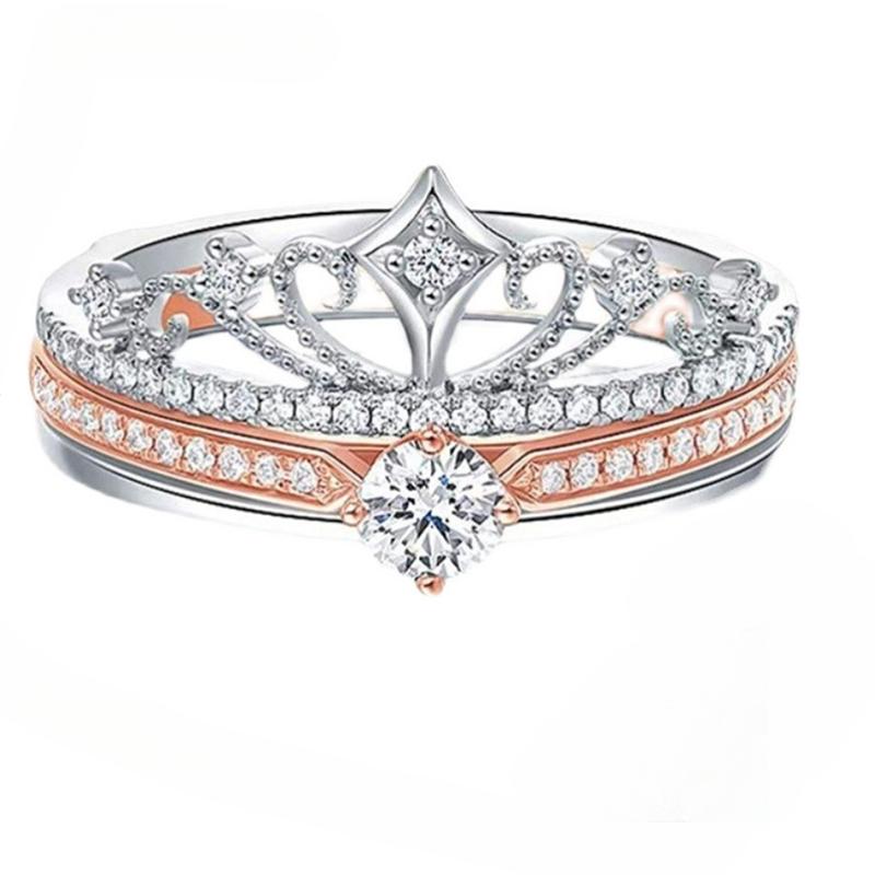 Кольца с бриллиантами в виде короны с муассанитом, женские кольца из стерлингового серебра с двойным слоем, два в одном, комбинация из розового золота 0,3 карата, кольцо с муассанитом