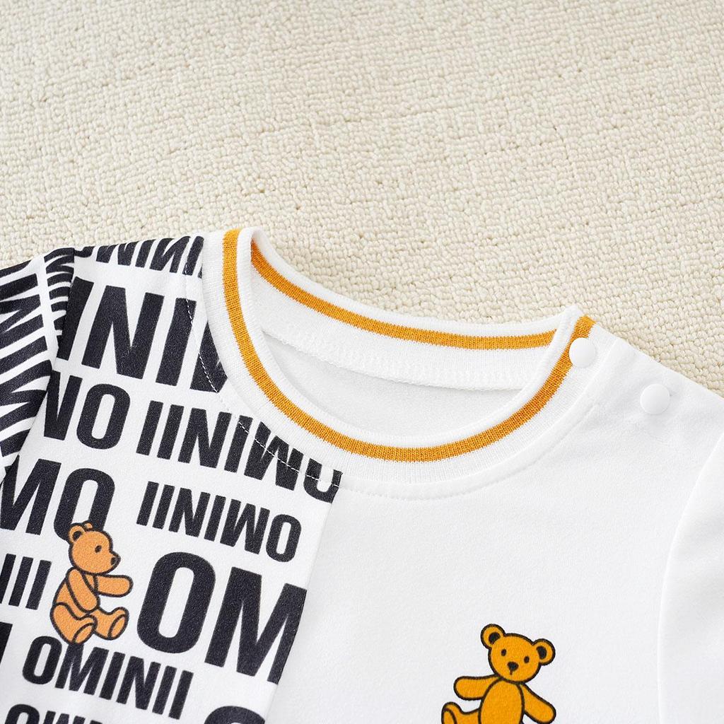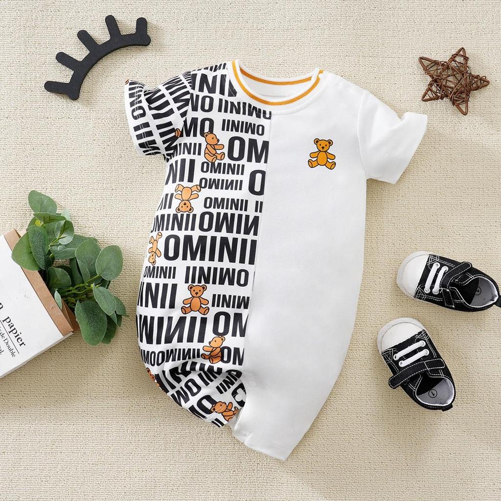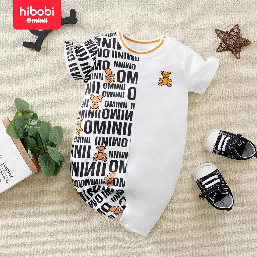 Hibobi комбинезон с короткими рукавами и принтом медведя для маленьких мальчиков, стильный повседневный детский комбинезон с круглым вырезом для детей 0-18 месяцев