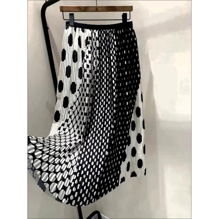 Летняя плиссированная юбка трапеции во французском стиле в горошек для женщин